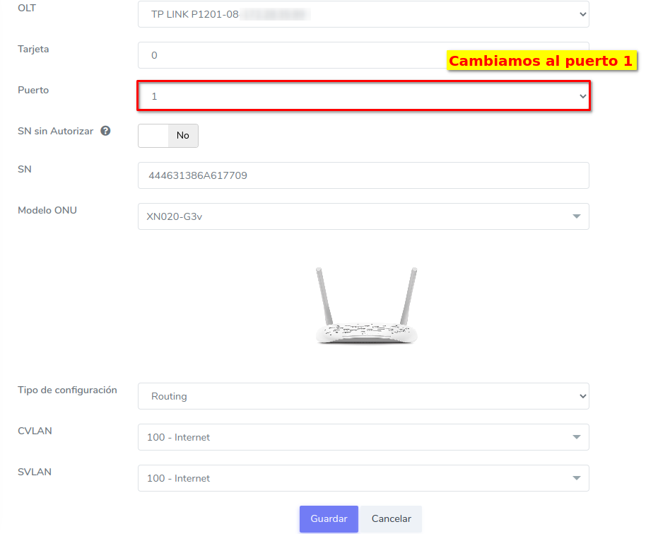 Cambiar ONU TP-Link de Puerto