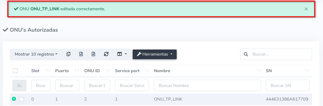 En este ejemplo la ONU se encuentra en Slot 0 en el Puerto 5; lo pasaremos al Puerto 1. Antes de editar verifique que la ONU cuente con servicio