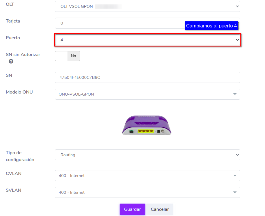 2Seleccione el puerto al que desea cambiar la ONU