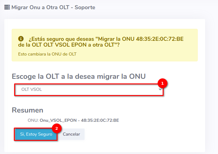 2Seleccionamos la OLT a la que queremos migrar la ONU
