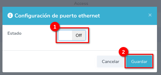 1 En Configuracion de puertos ETH dirijase al boton de configuración del puerto ETH que desee configurar