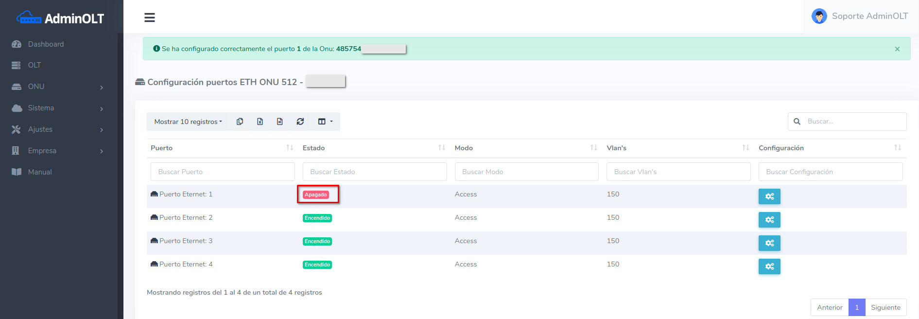 3Dirijase a la sección de ONU > Autorizadas y seleccione la ONU que acaba de autorizar.
