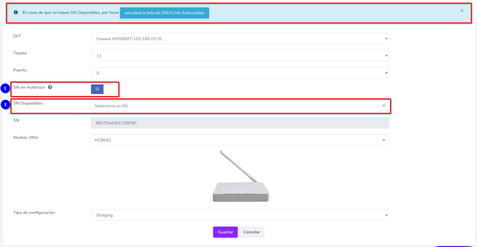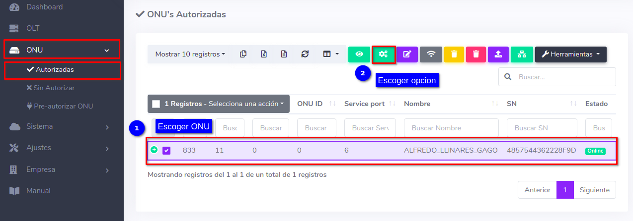 Pasos para editar información de ONU Autorizada por SN