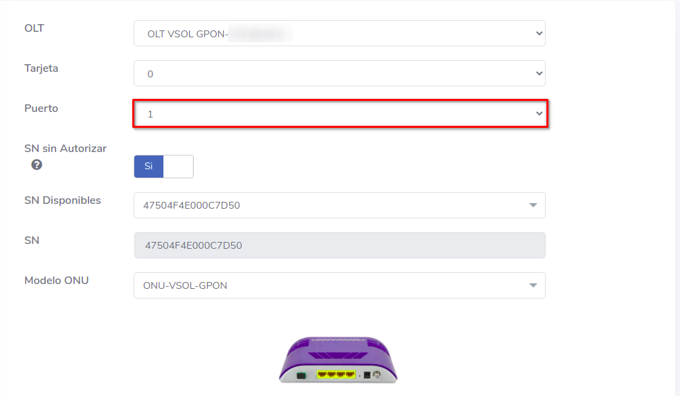 Esta función puede cambiar automaticamente datos como por ejemplo el Modelo de ONU, puerto y Tarjeta.