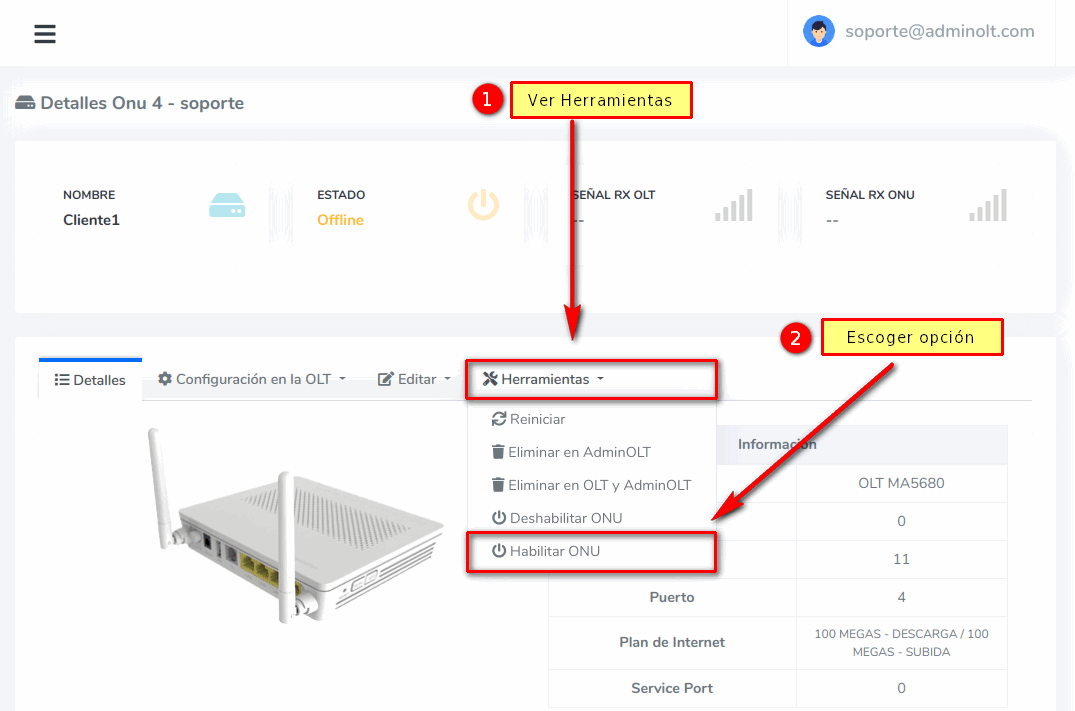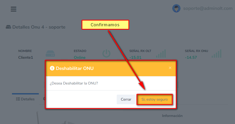 Para ver como deshabilitar una ONU puede leer el apartado ¿Como puedo deshabilitar una ONU Autorizada?, de igual manera para ver como habilitar una ONU puede leer el apartado ¿Como puedo habilitar una ONU Autorizada?
