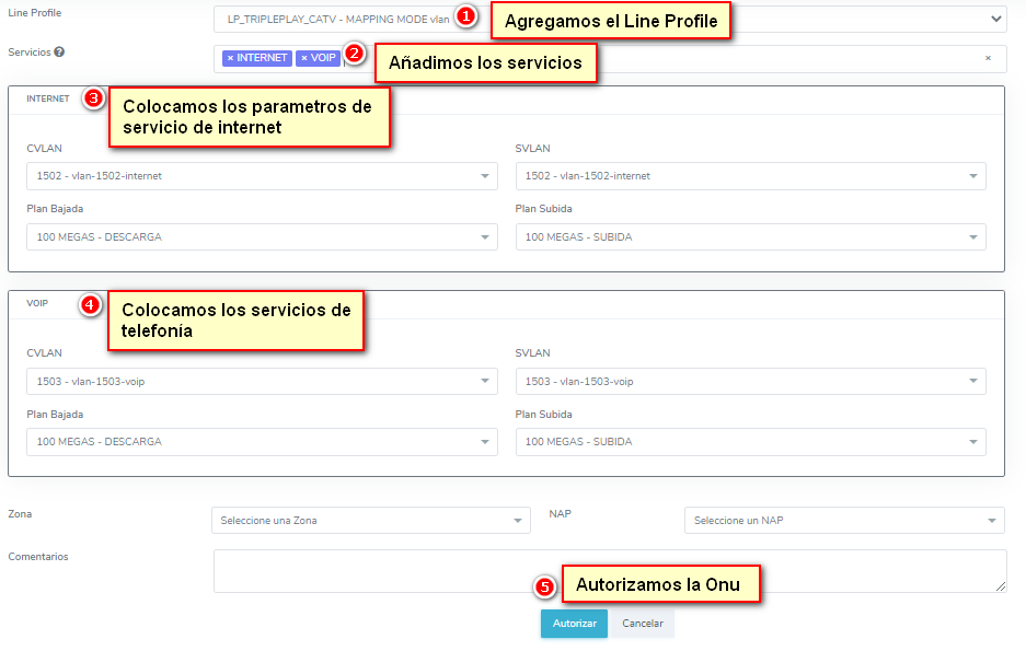 1Crear un Line Profile por cada VLAN desde AdminOLT