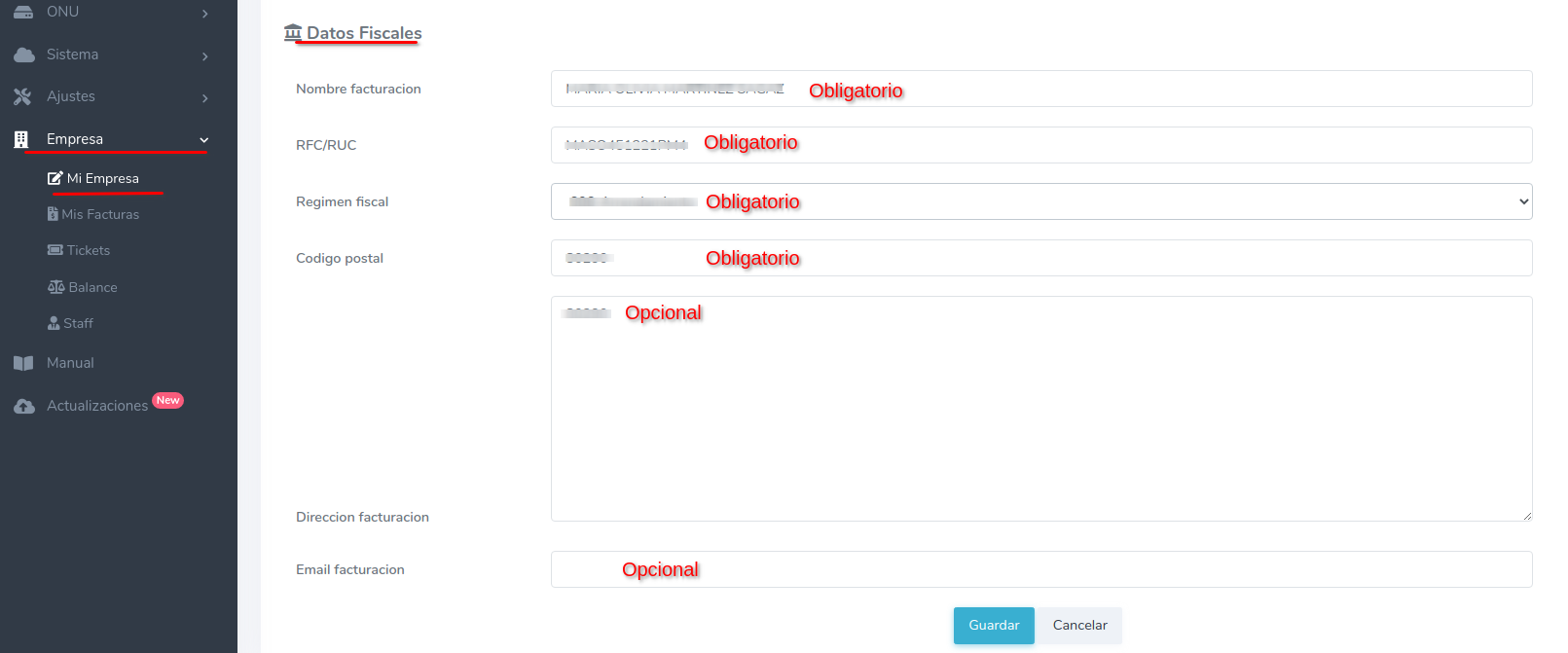 Llenar este formulario con sus datos fiscales.