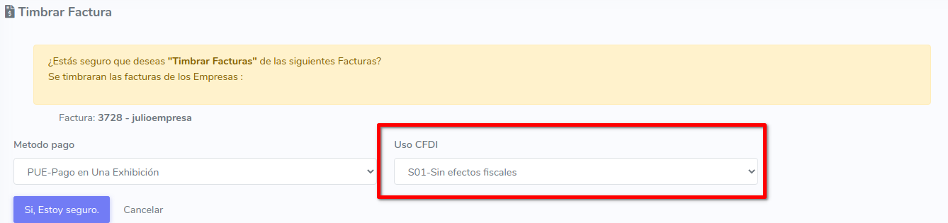 Importante Tener Seleccionado en Uso CFDI en S01-Sin efectos fiscales